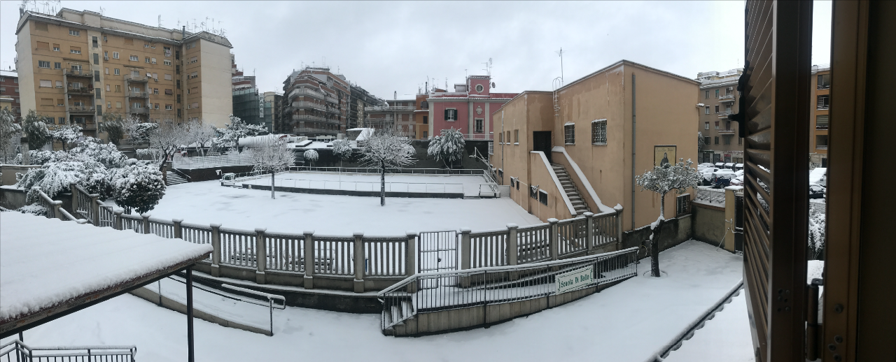 Una giornata un po' speciale; anche la nostra scuola come tutta Roma, si é risvegliata sotto un morbido mantello bianco